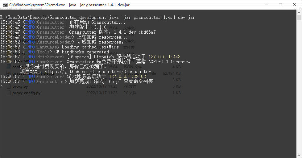 该代码是在Grasscutter-development文件夹里执行的,故数据库的存放路径为Grasscutter-development\db
