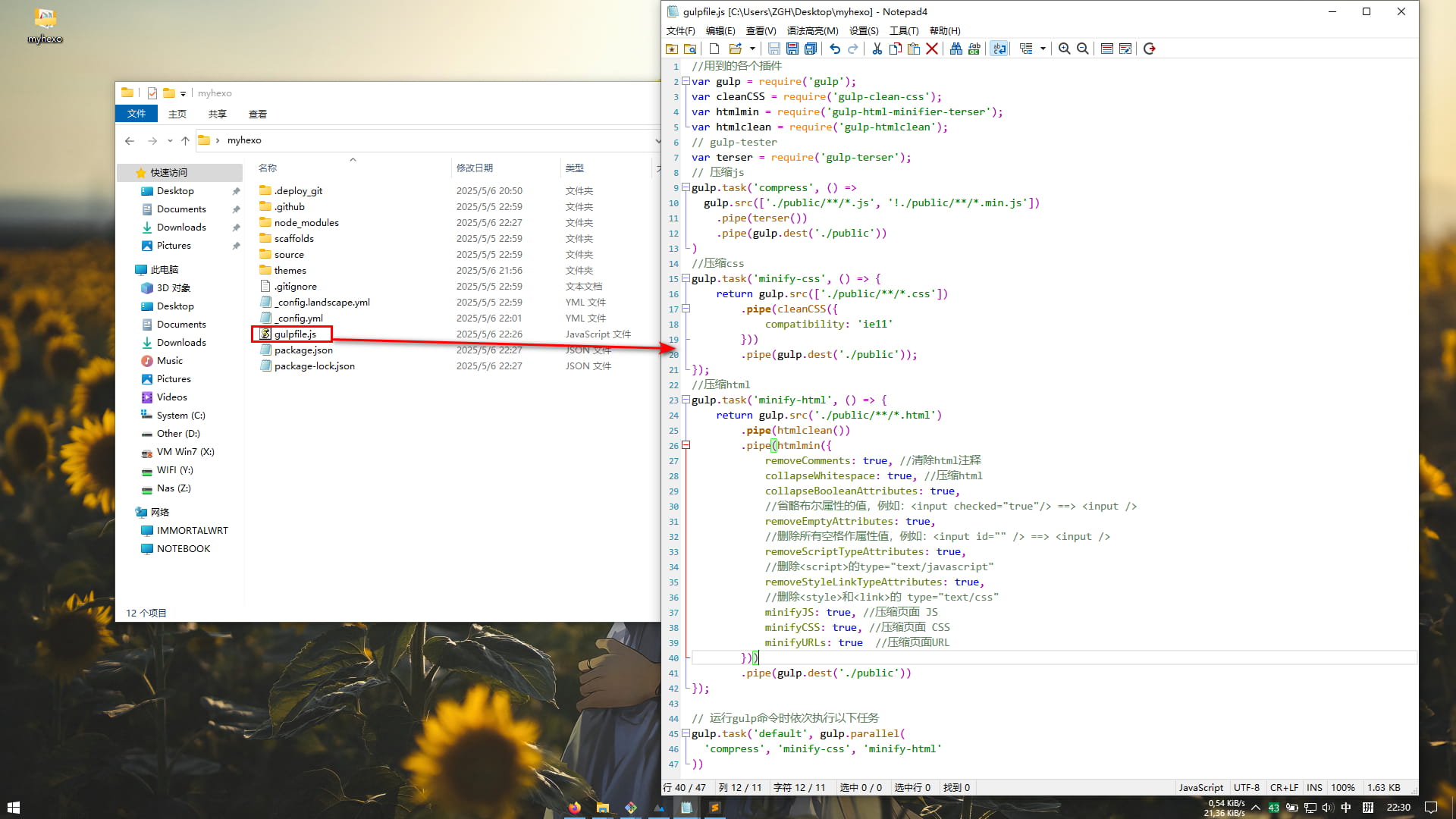 在 Hexo 目录下,创建 gulpfile.js 文件,粘贴下列代码