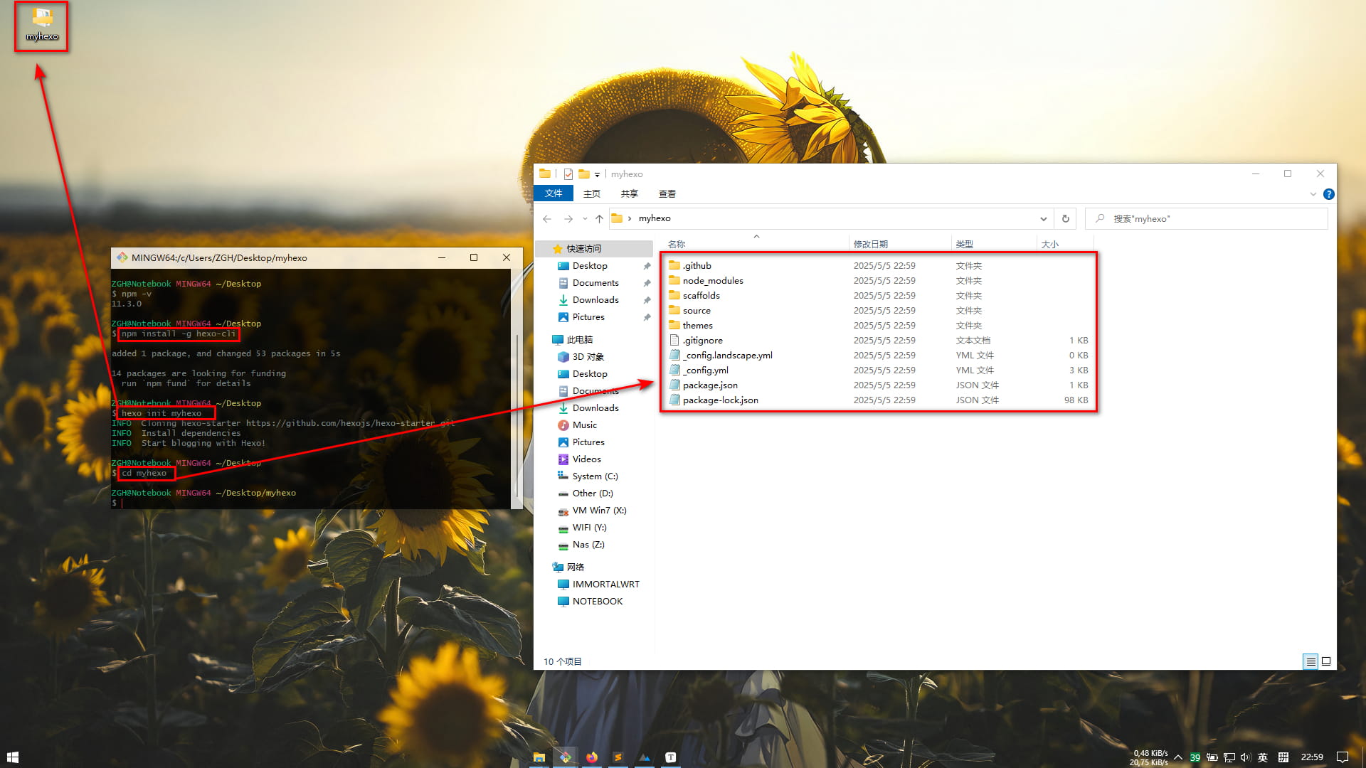 # 初始化 (myhexo是用于存放网站的文件夹,名字可自定义)
